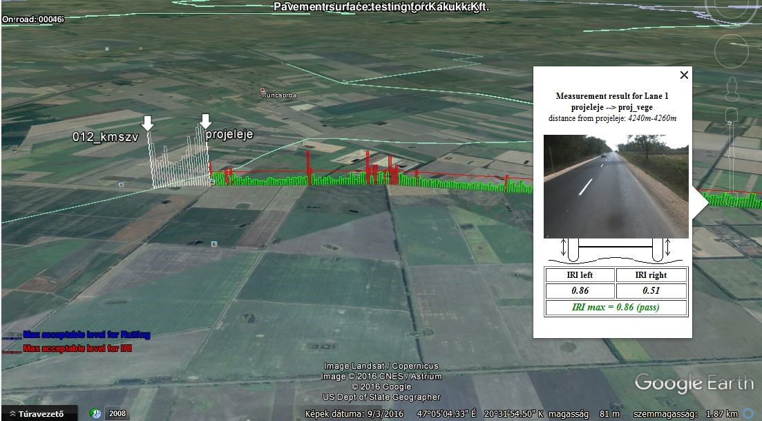 - Egy méréssel határozza meg az adott sáv hossz– és keresztprofil, egyenetlenség és nyomvályú értekeit, valamint a geometriai paramétereit